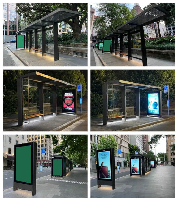 定制智能鋁型材公車站候車亭廣告牌燈箱公車站