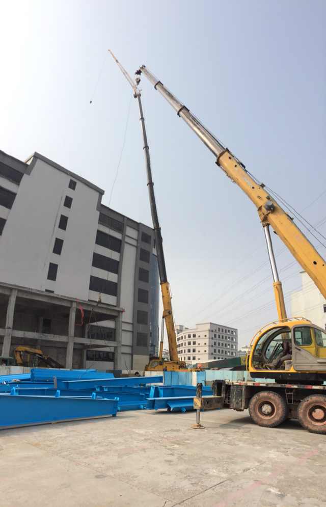 嘉禾羽毛球館位于廣州某高層建筑樓頂,為施工增加吊裝難度。項目面積達1450平方米。勝邦鋼構公司專業生產加工鋼結構廠房,倉庫,多層辦公室、宿舍、冷庫等鋼結構建筑。勝邦鋼構擁有專業的鋼結構加工設備及完善的設計生產加工流程,滿足各種鋼結構建筑的加工要求。以下為部分建筑安裝展示圖片: