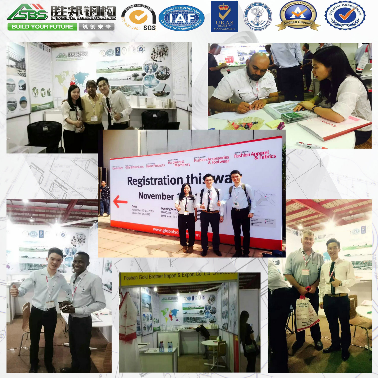 Foshan Shengbang Steel Structure Co., Ltd.(SBS) had a good start in South Africa Exhibition. At the first day, some old customers visited us, discussing their new projects. And many new customers are attracted by our poster displaying our products and project cases.